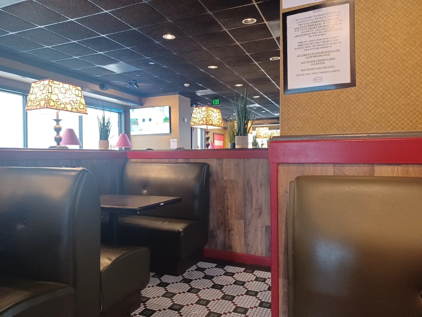 When I asked for the check, the server took me quite a while to give me the slip. During this time, I contemplated how balanced the food was for an American cuisine pancake shop. I tried the branded table syrup and recognized the cloying sweetness associated with pancakes. Water was absent from my table, and I saw a table receive a glass upon request. Across from me was a bill adjustment sign on the wall addressing a 4% charge on debit/credit transactions. At this point, the rising noise level of the restaurant alerted me that the restaurant went from moderately busy to pretty busy, then my check dropped.