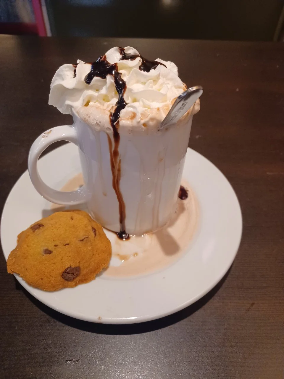 Hot Chocolate served with a Chocolate Chip Cookie - $4.50